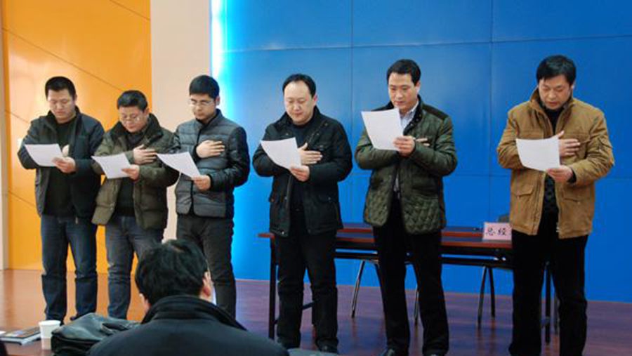 上圖:三公司各辦事處經(jīng)理宣讀承諾書(shū)。