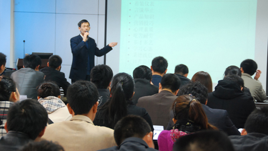 市場部經(jīng)理陳鵬向?qū)W員們講授產(chǎn)品知識