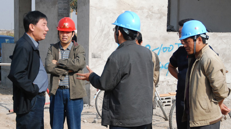 李永安董事長視察了工程封頂現(xiàn)場,并與項(xiàng)目施工單位負(fù)責(zé)人交談