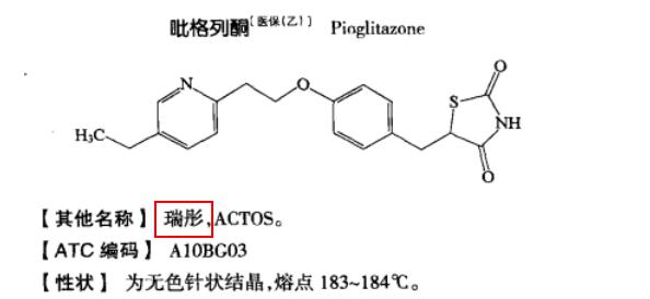 注:《新編藥物學(第17版)》第10篇 激素及其有關(guān)藥物——第61章 胰島激素和其他影響血糖的藥物——61.3 口服降糖藥——吡格列酮(P661)
