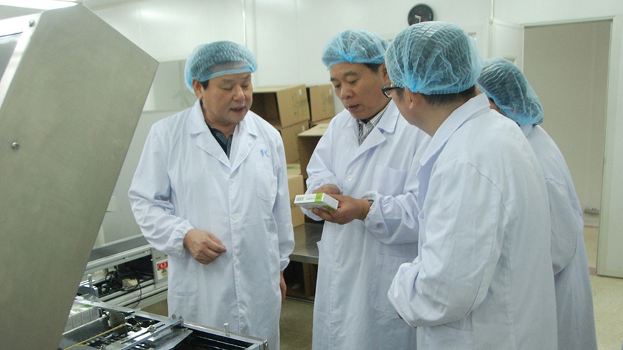 丁主席一行深入制劑車間察看生產(chǎn)環(huán)境