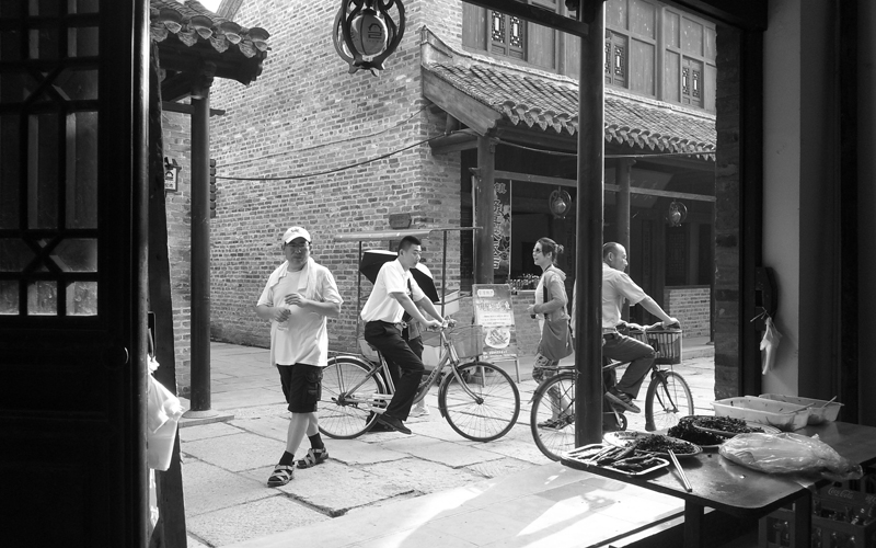 第一站去的是一個古鎮(zhèn)——窯灣。窯灣位于新沂市的西南邊緣,位于京杭大運河及駱馬湖交匯處。此處三面環(huán)水(東瀕駱馬湖,西傍大運河,老沂河穿境而過),與宿遷、睢寧、邳州三市縣一水相連,是一座聞名全國的水鄉(xiāng)古鎮(zhèn)。歷史上頻發(fā)的山洪裹挾而來的泥沙成了當地村民燒制陶器的最佳材料,于是形成了一片片規(guī)模不等的窯場,又因地處京杭大運河拐彎處,故此地被稱為“窯灣”。據典籍記載,古鎮(zhèn)始建于唐朝初年,素有“東望于海,西顧彭城,南瞰淮泗,北瞻泰岱”之描述和“黃金水道金三角”、“蘇北水域勝江南”之美譽及“小上?!敝Q。京杭大運河船運給這塊土地帶來了財富和繁榮,明清時期,會館、店鋪、錢莊、當鋪、茶館的衙門林立,在當時儼然一副大都市的派頭。如今,做舊如舊的古城,依然看得出當時的繁榮。