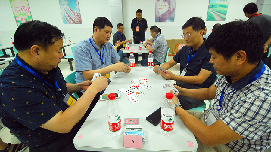下午6點(diǎn)比賽正式開始,8名裁判認(rèn)真負(fù)責(zé),嚴(yán)格執(zhí)行規(guī)則,整個(gè)流程環(huán)環(huán)緊扣順利進(jìn)行。賽場上,各隊(duì)選手們密切配合,沉著應(yīng)戰(zhàn),切磋牌技,經(jīng)過4輪的抽簽,相互選手在交替對(duì)弈的同時(shí),也增進(jìn)了友誼。經(jīng)過激烈的角逐,有三對(duì)選手分別獲得了前三名,雙方領(lǐng)導(dǎo)為獲獎(jiǎng)選手頒發(fā)了獎(jiǎng)品。