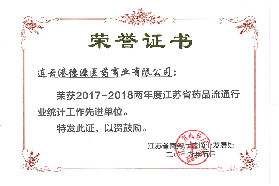 近日,江蘇省商務(wù)廳在南京召開2019年江蘇省藥品流通行業(yè)統(tǒng)計工作培訓(xùn)會議,總結(jié)了2017-2018年全省藥品流通行業(yè)統(tǒng)計工作,部署2019年行業(yè)管理工作安排。會上還對2017-2018年統(tǒng)計工作開展較好的單位和個人進(jìn)行表彰。連云港德源醫(yī)藥商業(yè)有限公司榮獲“2017-2018兩年度江蘇省藥品流通行業(yè)統(tǒng)計工作先進(jìn)單位”;業(yè)務(wù)部秦向楠被評為先進(jìn)個人。