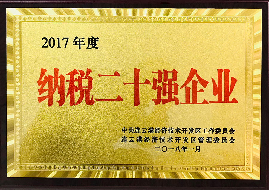 近日,公司被中共連云港經濟技術開發(fā)區(qū)工作委員會和連云港經濟技術開發(fā)區(qū)管理委員會評為"2017年度納稅二十強企業(yè)",這是公司自2010年首獲此稱號以來,連續(xù)第8年獲得該榮譽稱號。德源藥業(yè)堅持依法履行繳稅納稅責任,始終把誠信納稅作為企業(yè)發(fā)展的前提,成功打造了企業(yè)信用品牌,同時也為促進地方經濟發(fā)展做出了貢獻。