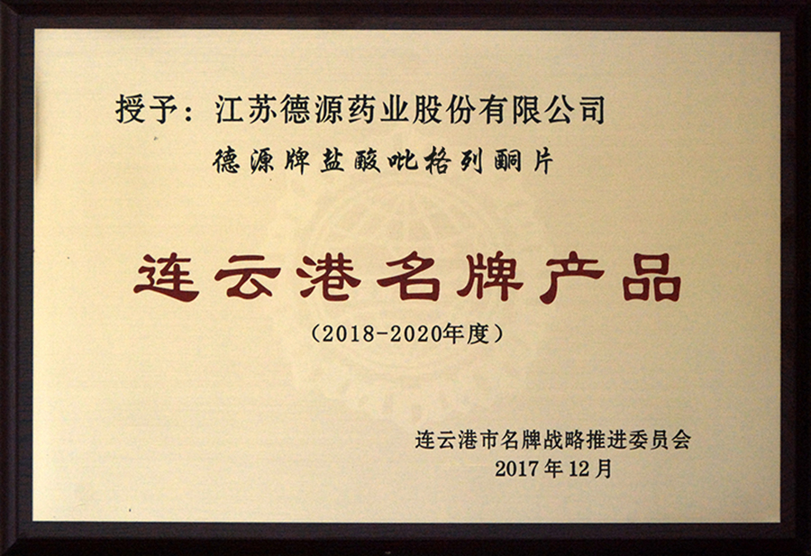 江蘇德源藥業(yè)股份有限公司積極推進(jìn)品牌戰(zhàn)略,認(rèn)真推行科學(xué)的質(zhì)量管理方法,不斷強(qiáng)化自主創(chuàng)新能力,取得了良好成效。日前,我公司申報(bào)的“德源”牌鹽酸吡格列酮片,經(jīng)連云港名牌戰(zhàn)略推進(jìn)委員會(huì)審定,榮獲了“連云港名牌產(chǎn)品”稱號(hào)。