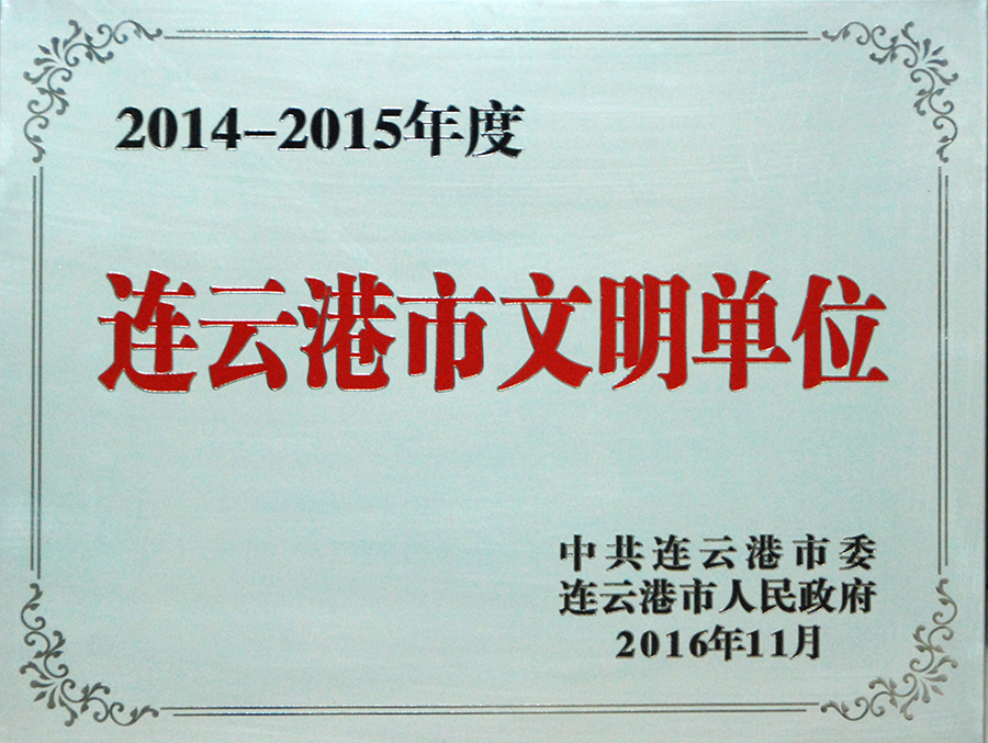 近日,公司通過2014-2015年度連云港市文明單位復核,這是自2010年度獲評市級文明單位以來,連續(xù)6年獲得此項榮譽。 多年來,公司致力于文明單位建設工作,堅持以“德”為核心的企業(yè)文化建設,不斷提升員工文明素養(yǎng),增強企業(yè)凝聚力,連年獲得市級、省級主管部門認可。根據(jù)國家級文明單位評審標準,今年,公司將進一步強化文明單位的工作要求,著力開展國家級文明單位創(chuàng)建工作。
