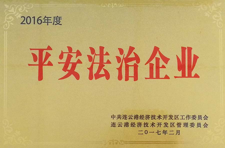 近日,連云港經(jīng)濟(jì)技術(shù)開(kāi)發(fā)區(qū)對(duì)2016年度全區(qū)綜治、法治、司法、信訪工作先進(jìn)集體和先進(jìn)個(gè)人進(jìn)行了表彰,其中榮獲平安法治企業(yè)稱號(hào)的共5家,我公司名列其中。