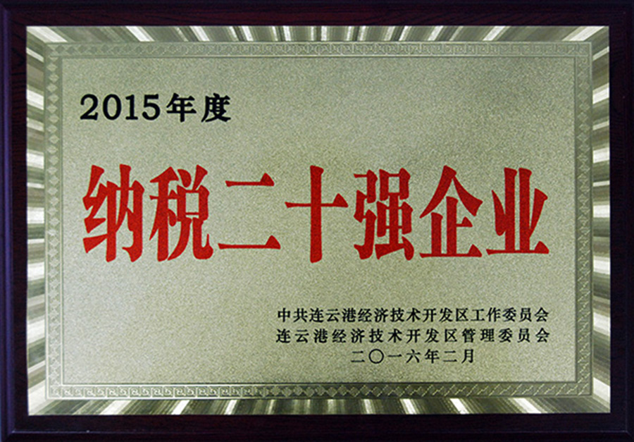 近日,公司被中共連云港經(jīng)濟(jì)技術(shù)開(kāi)發(fā)區(qū)工作委員會(huì)和連云港經(jīng)濟(jì)技術(shù)開(kāi)發(fā)區(qū)管理委員會(huì)授予"2015年度納稅二十強(qiáng)企業(yè)"榮譽(yù)稱號(hào),這是公司自2010年以來(lái)連續(xù)6次獲得該榮譽(yù)稱號(hào)。