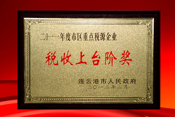 近日,連云港市政府下發(fā)文件,對(duì)2011年度市區(qū)重點(diǎn)稅源工業(yè)企業(yè)進(jìn)行了表彰,我公司被授予“2011年度入庫(kù)稅收上臺(tái)階獎(jiǎng)”,并獲得財(cái)政獎(jiǎng)勵(lì)資金10萬(wàn)元。