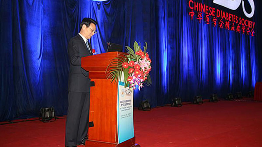 中華醫(yī)學會糖尿病學分會副主任委員、上海市第六人民醫(yī)院糖尿病研究所所長賈偉平主持開幕式